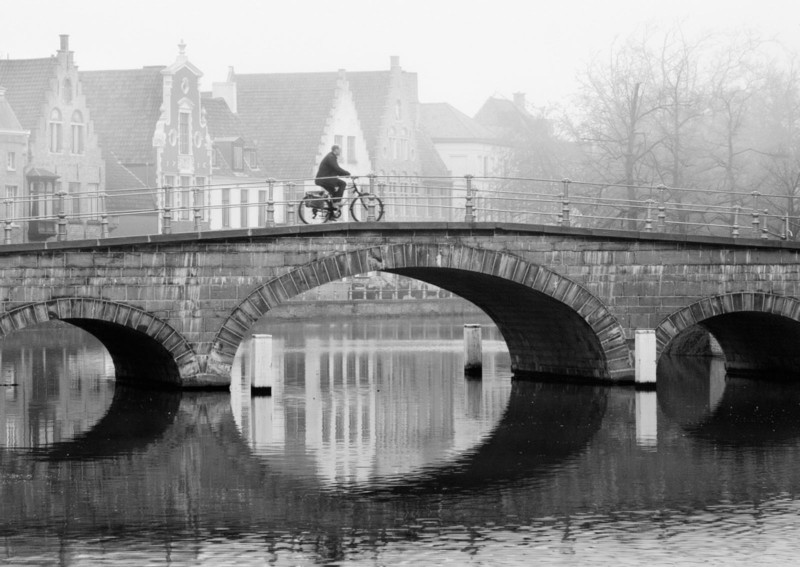 This is actually one of my personal favorite photographs from my portfolio. I took it on an atmospheric misty morning in the picturesque Belgian city of Bruges. The location for this photograph was certainly interesting but for me, it is the man crossing the bridge on his bicycle that makes this photograph special.