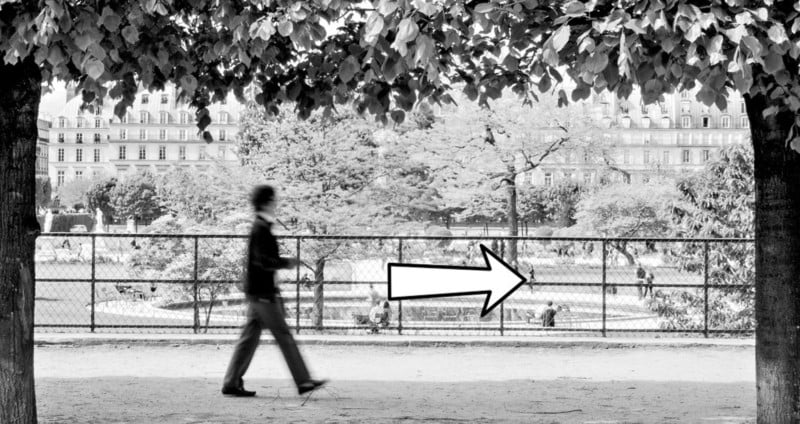 The photo above follows the ‘left to right’ rule. The woman walking her dog in the Tuileries Garden in Paris is walking from the left to the right of the frame.