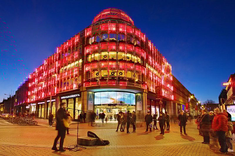 Red and blue are also complimentary colors on the color wheel. The Stephen’s Green Shopping Center in Dublin was lit up red for Christmas last year. This was very striking against the deep blue of the early night sky. I love photographing cities during blue hour. The deep blue of the sky at this time provides a very attractive backdrop to the city’s architecture and lights. The pure black of the late-night sky is not as striking and contrasts too sharply with the lights of the city.