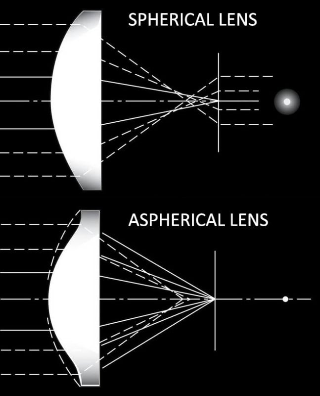 Certain shapes may be used in other elements to improve image quality in other ways. For example, aspherical lens elements are often used to combat distortion in wide-angle lenses and to reduce spherical aberrations in fast lenses.