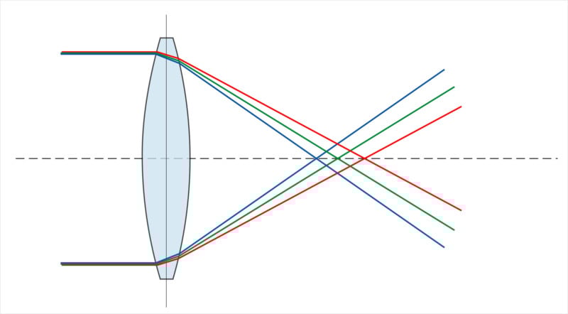 It happens when the lens is unable to focus all of the wavelengths of light on the same focal plane.