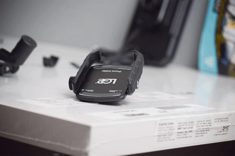 In the two example photos below, you can see that as the focus is changed from the mobile holder in the foreground to the mirror holder in the background, the second image seems to have been magnified and a little cropped in (they were not cropped in post-production).