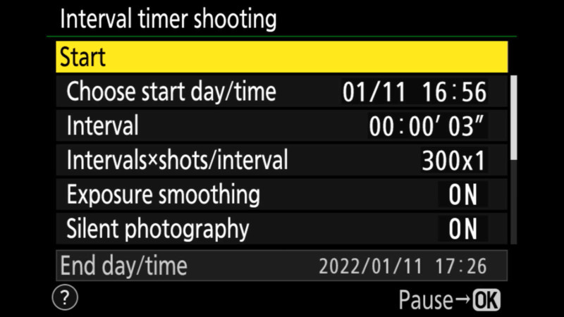 Note: In order to better explain the use of each setting, I will refer to a timelapse shooting scenario in this section.