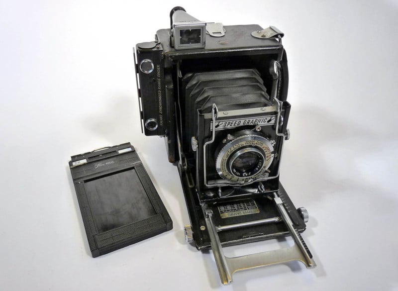 The most popular of these are the Graflex Speed Graphic and the Crown Graphic. The press camera was widely used in the first half of the 20th century and they have some common features like collapsing into a compact box, bellows attached to a flatbed track, the ability to accept sheet film and roll film via interchangeable backs and they don’t have the number of lens movements like other large format cameras.