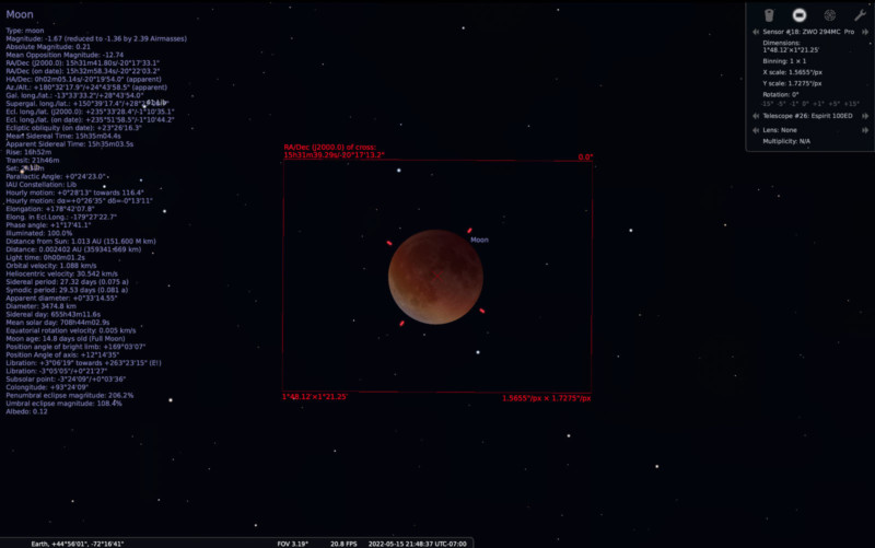 Much like SSO, you can use your capture software to shoot the Moon. Because of automation, you may wish to shoot at a similar focal length to planets, such as 2000mm. This is great for getting amazing detail of the craters but does require that you shoot as a mosaic to get the entire surface in the frame. Fortunately, automation takes care of this once you get around the curve of programming it.