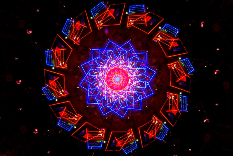 After I complete the full 360-degree rotation I stop the exposure. As the single long exposure runs every time I stop the rotation and allow some light into the camera the light painting builds into a geometric work of art!