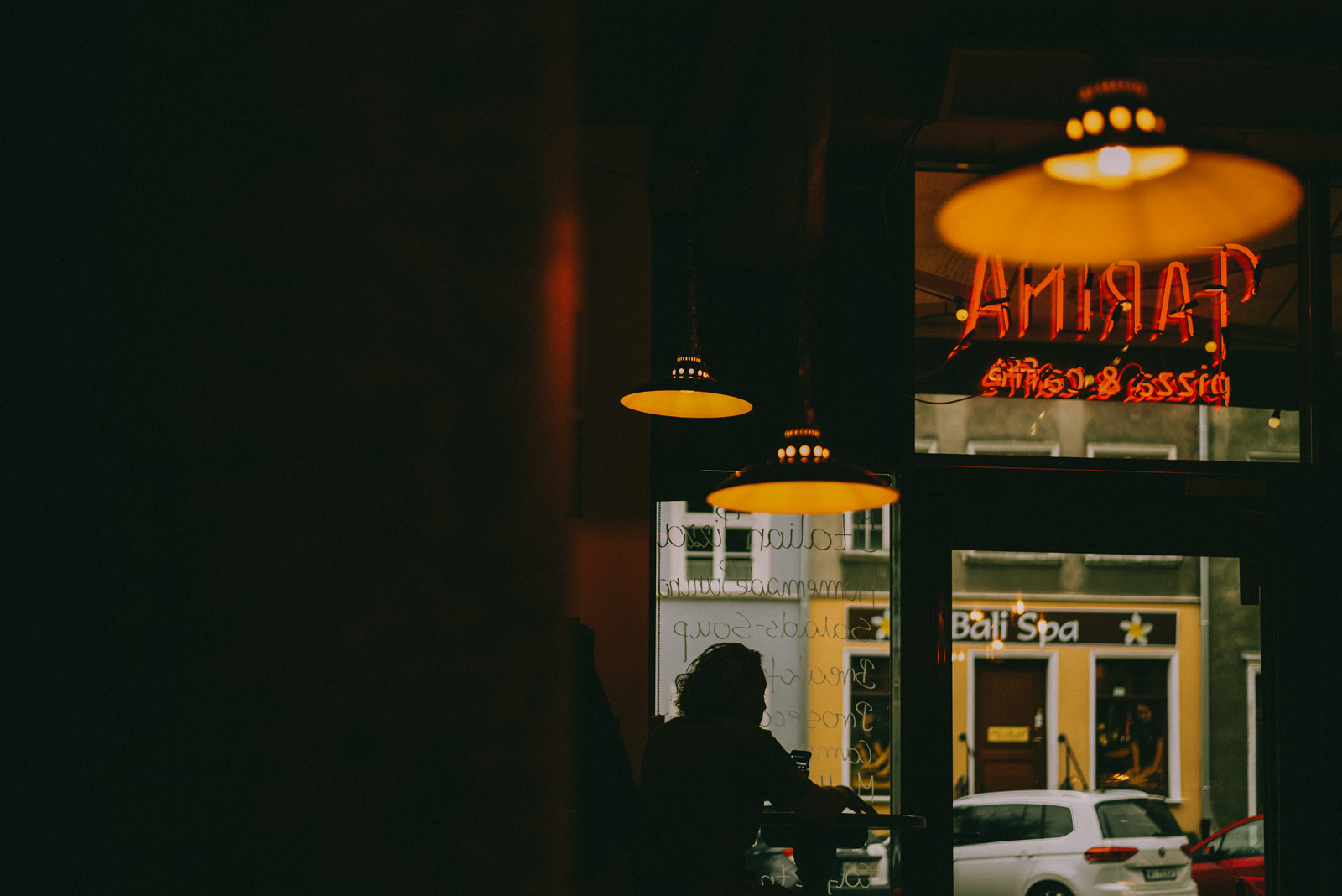Nighttime street photography may prove more difficult to shoot, but you can follow the available light to give you the best chance of a photo that is sharp enough. Look out for window light, neon signs, street lamps, and other light sources.