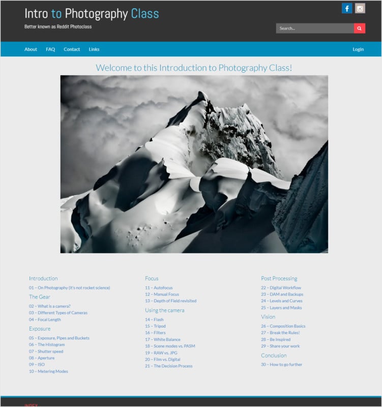 Rounding out our list of the best free photography courses is the Intro to Photography Class, which you might already have heard referred to as the Reddit Photoclass. Unlike most of the courses we’ve included in this article, the Intro to Photography Class requires you to read instead of watch.