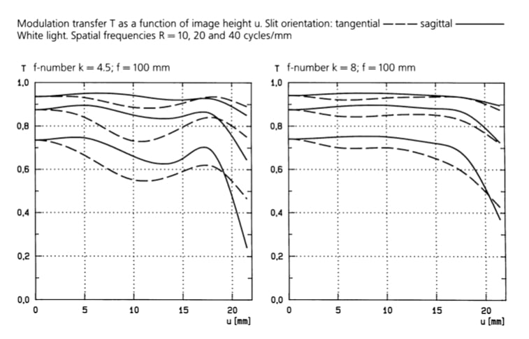 So good is the lens, its MTF (modular transfer function) chart shows there is little improvement to stopping down. Contrast is excellent both wide open and stopped down, with resolution improving and flattening out slightly by f/5.6. As you can see, there is some astigmatism as you move away from the center, likely due to residual spherical aberration. Keep in mind, Zeiss publishes measured MTF charts, not theoretical MTFs — something that no other manufacturer does.