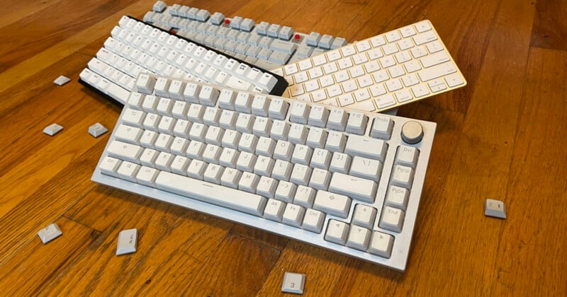 The DaVinci Resolve Editor Keyboard packs in both photo editing shortcuts and a full-size keyboard. Above the clean metallic body, color-coded shortcut keys pop.