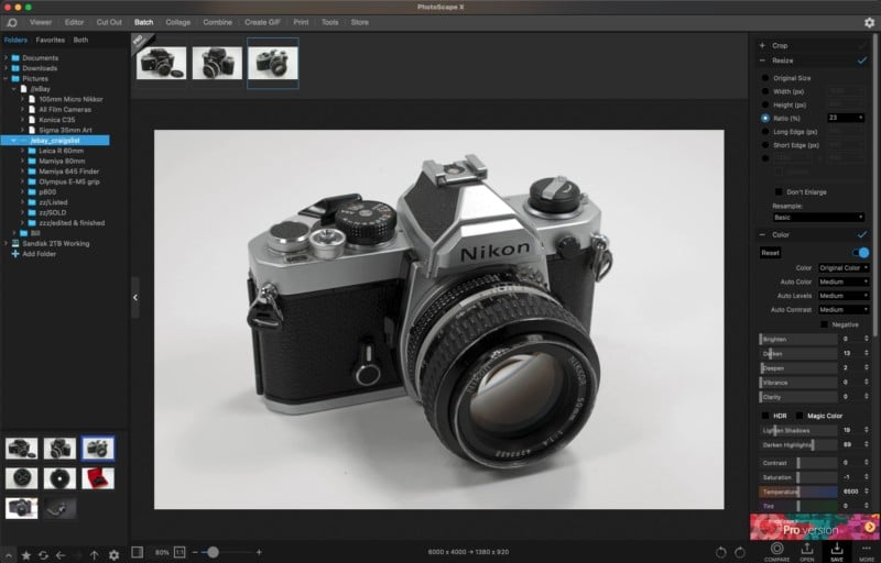 One important note: The free version will limit you to 4,000 pixel-wide images. Images larger than that will be downsized.
