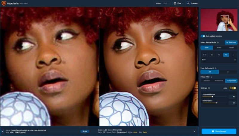 For Adobe’s part, it actually does offer a similar feature with its absolutely phenomenal Super Resolution (or “Enhance”) in Adobe Camera RAW. It performs beautifully and is lightyears faster than Gigapixel — not only because it requires a simple right-click, but because it can upscale in a matter of seconds. What makes Topaz Gigapixel AI worth its premium for many, however, is its superior noise reduction on upscaled images as well as significantly greater flexibility and options that allow you to tweak the results to taste and optimum quality. All in all, if upscaling is a crucial part of your workflow or something you often take advantage of, then Topaz Gigapixel is your best bet. For the user who simply upscales their photos every once in a while, Adobe’s Super Resolution is more than adequate.
