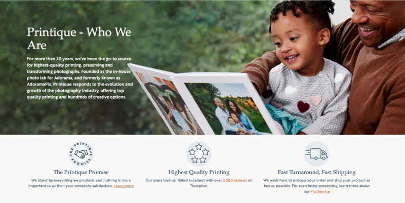 Formerly Adoramapix, Printique’s logo itself bolsters its cred, proudly letting you know it is “An Adorama Company.” Adorama, the popular New York-based camera and electronics retailer, is a name that holds a lot of weight in the photography community, and Printique does no less than live up to the company’s high and well-earned reputation.