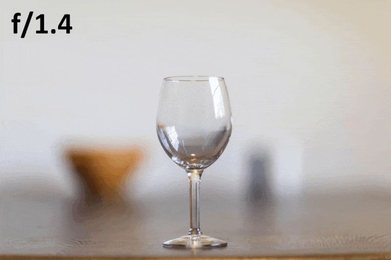 Here is a sequence of photos of the same scene and subject captured at apertures ranging from f/1.4 to f/16 — notice how shallow the depth of field is at low f-stops (as seen in the blurry background) and how deep it is at high f-numbers (as seen in sharper background objects).