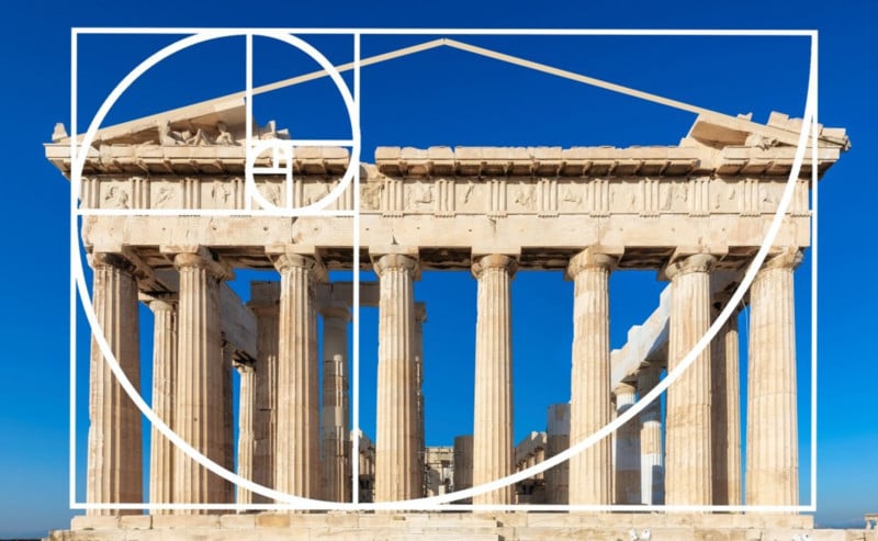 Rather than dividing the frame into equal rectangles, it is instead divided into a series of squares as in the example above. This is known as a “Phi Grid”. These squares are then used as a guide to add a spiral that looks like a snail’s shell — this is known as the “Fibonacci Spiral”.