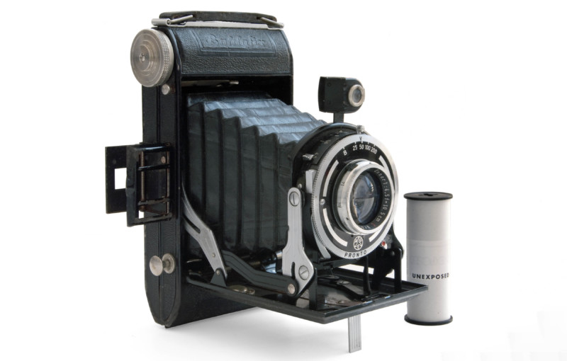 The box camera is just that – a simple box that was made of cardboard, wood, or plastic which had a lens and viewfinder installed. One of the most popular types of box cameras, one that’s still in use today, is the Kodak Brownie. This camera was made with a type of plastic called Bakelite. These cameras take 620 films, but with a quick tutorial you can find online and a 620 spool, you can easily wind your 120 films onto the 620 spools and you’re ready to go!