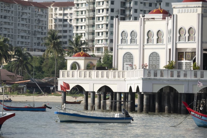 To test parallax I went out to my friendly neighborhood fishing village and made a series of photos of the Floating Mosque (it really isn’t floating, it rests on pillars over the sea). I stood in one location and shot a series of photos of the mosque focusing on the same spot in each photo.