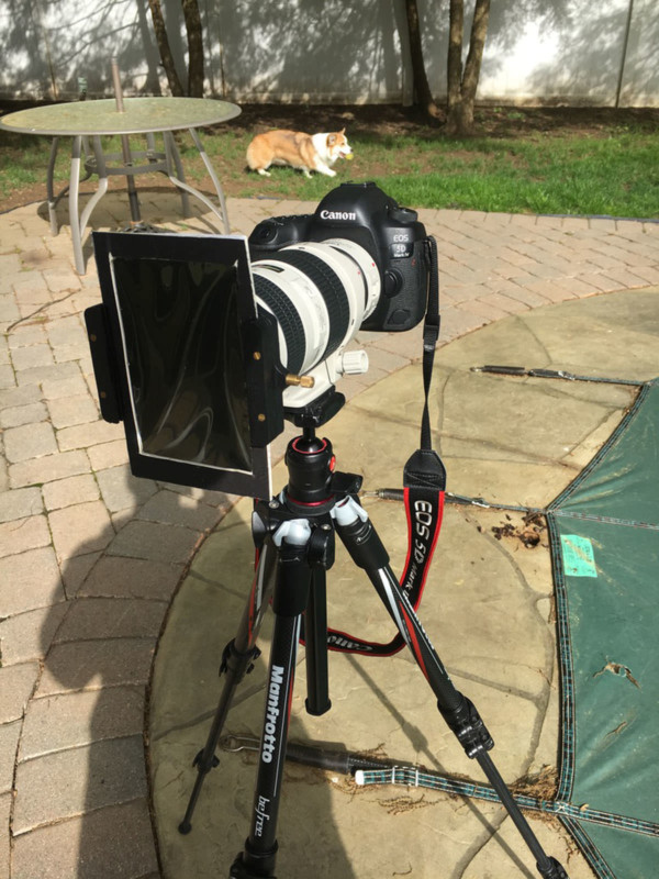 - Point the camera at the sun. DO NOT look through the viewfinder if using a typical DSLR and the filter is not naked eye safe. I recommend using live view either way.