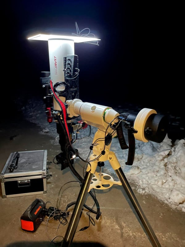 - Optional: dew heater. These super cheap USB-powered Velcro straps can wrap around the front of your lens to prevent condensation to build. Useful in wetter climates where the dew point drops a lot overnight, but not always necessary in a desert.