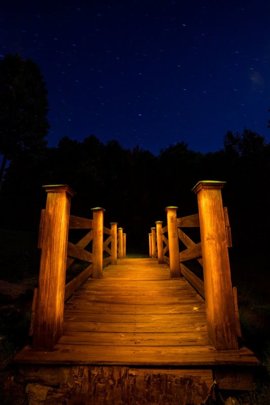 Once I feel that the scene is illuminated how I desire I then go back through the scene highlighting specific details in the scene. I get very close and nearly touch the areas in the scene that I want to highlight. In this instance, I touched the edges and tops of the posts with yellow light! This is the way that I like to light paint nearly every image that I create.