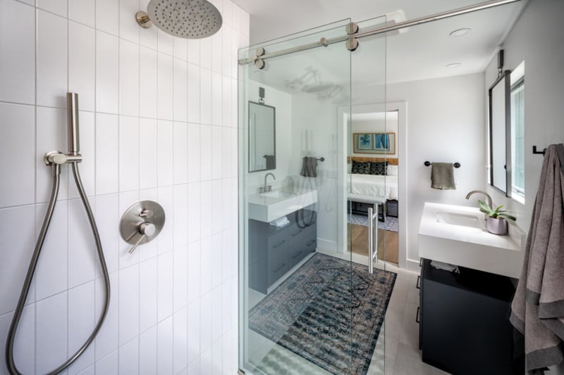 I used two flashes in this instance, one handheld behind my camera in real estate photography’s infamous “Statue of Liberty pose”, and one placed on a counter behind the wall to illuminate the adjacent space.