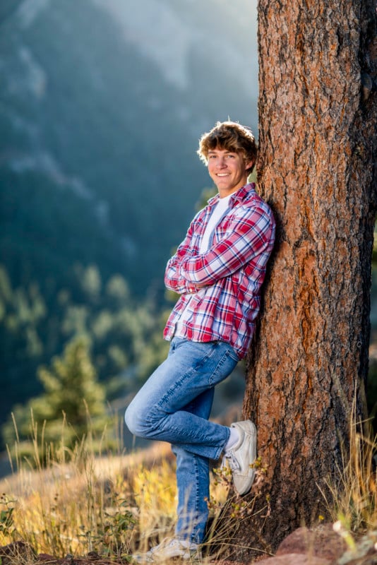 Especially for outdoor shoots, find things for your model to lean against, sit on, and interact with. This could be as simple as your model putting their foot up on a rock or log. This will help your model feel more comfortable and less rigid, by doing something rather than just standing and smiling.