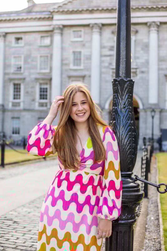Be careful to pay attention to the background in your photos and how secondary elements interact with your subject. You may not notice a tree branch emerging out of your subject’s head while shooting the photo, but it can look obvious and distracting to viewers in the resulting portrait. If you pay attention to this, you can avoid weird subject-background conflicts by repositioning the subject, moving yourself, or both.