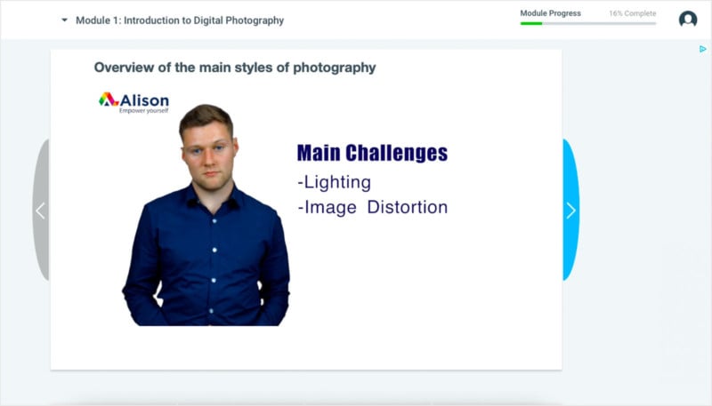 If you’re looking for a full course to give you a complete understanding of the basics of photography, the Digital Photography Diploma on Allison’s website is worth checking out. The program lasts for over 10 hours, and you can decide to complete it in whichever way suits you best.